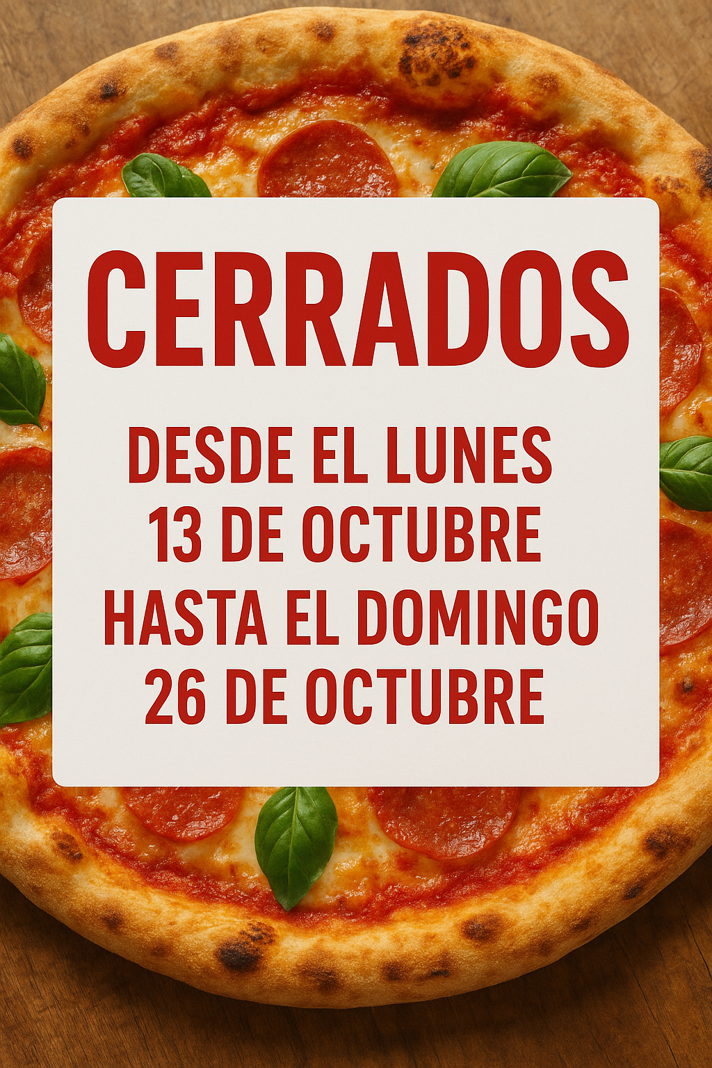 Disponemos de una carta muy variada de pizzas o puede elegir sus ingredientes al gusto.